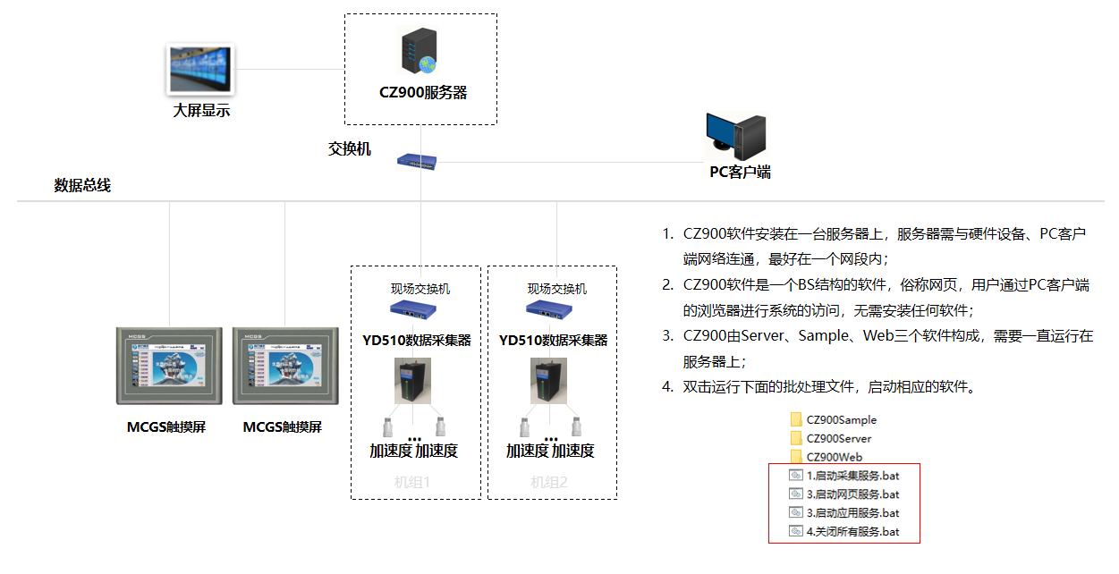在线状态监测预知维修系统(CZ900)是我院最新研发的振动在线监测系统,与在线高速采集卡配套使用。软件采用BS架构设计,全后端分离,支持APP同步,使用时无需安装软件,在浏览器上输入软件地址即可。CZ900的核心功能为数据监测功能,主要包括实时数据、实时汇总、实时报警、报警事件、历史数据、测点汇总。